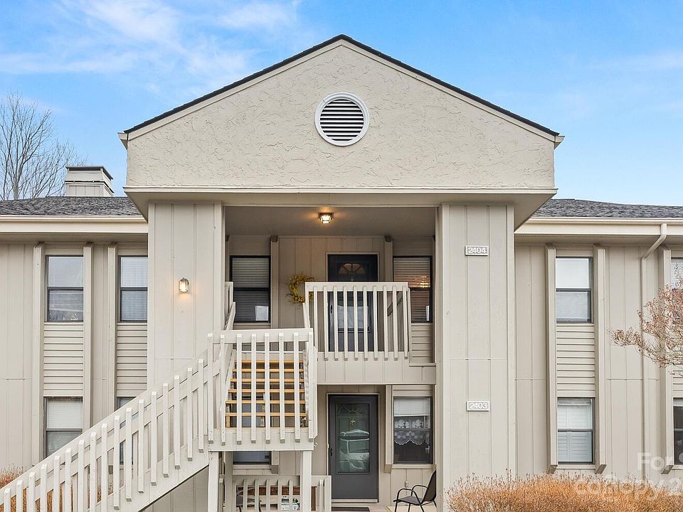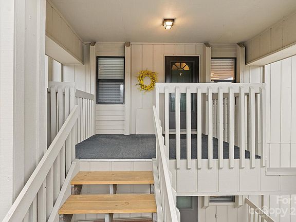 DESIRED 2bedroom 2full bath condo in The Cloisters; move in ready! Dead end road and NO thru-traffic. Just minutes away from Asheville NC and amenities, including Municipal Golf Course. 2nd floor condo, front and back porches covered, with sitting area. Front porch, fold up table, small storage cabinet, electrical outlet. Pull down blinds (3yr old) for privacy on back porch. View of quiet, beautiful, courtyard! Locked storage space.New refrigerator, all appliances, including washer/dryer, and window treatments remain. Carpets steamed cleaned NOV/2023. Wired for Spectrum. Bedrooms have ceiling fans and large mirrored closet doors. Open living/dining space. Kitchen, ceiling fan. INVITING, COMFY, AT HOME. Please remove shoes.