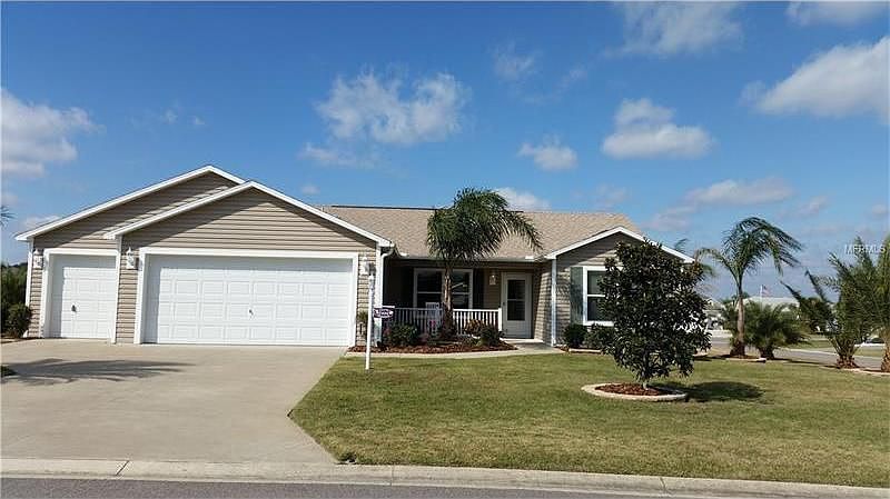 Price is Turnkey and includes all furniture and more - The ever so popular Sun Kissed/Amarillo floor plan sits beautifully on this nice size corner lot w/ rear elevation. The curb appeal on this home just seems to sing to you upon first sight & shall I mention it has a full 2 car garage w/ a GOLF CAR GARAGE too. Landscaping has recently been enhanced w/ mature palm trees speckled along the property with lovely block boarders adding to the already well appointed plantings. Owner has also added a nice railing to the front porch for that more finished look. A heavy duty storm door w/ transition screen to glass allows you to enjoy the great Florida weather & fresh air. The wonderfully open living area welcomes entertaining & all around function. It is easy to integrate the areas however you wish. The guest bedrooms are separate from the master suite w/ a pocket door option to give you & your guests ideal privacy. The kitchen has plenty of storage but there are also cabinets in the laundry if more is needed. A water softener is included too. The lanai is so inviting to sit & relax in. Due to the rear elevation it has a great breeze availability on the screen area or to get more sun exposure there is an open deck area that is also elevated. This house has such a good feel to it. The decor really compliments & helps show all that you could do. Please come by to see this fabulous opportunity for you to have a beautiful home in one of the most ideal areas of The Villages. Located directly between Lake Sumter Landing & Brownwood. Now that's convenient... :-)