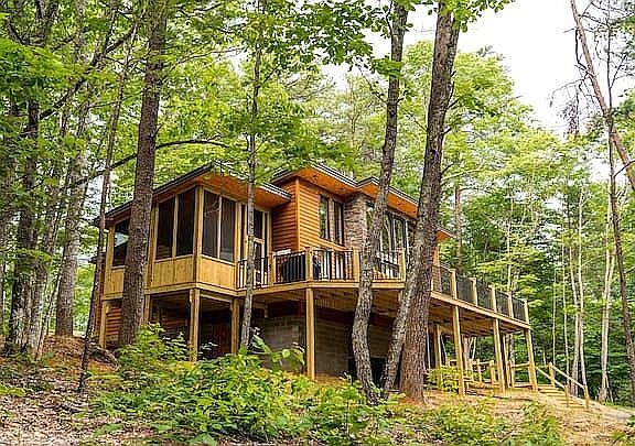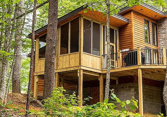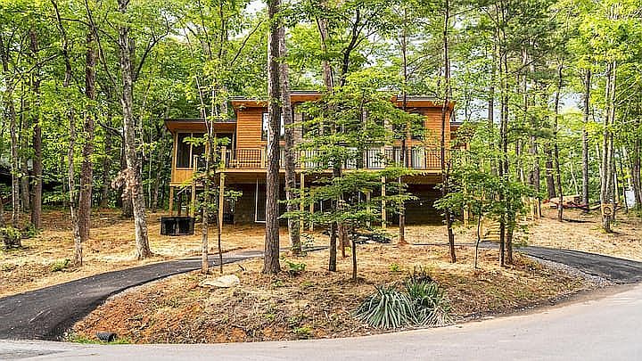 UNIQUE MODERN RUSTIC ONE LEVEL CABIN! AMAZING RENTAL INCOME! 2BD/2BA Barefoot Hideaway is a new (2020) custom built. This cabin has 2 master suites each with their own bathroom. Enjoy your morning coffee on the large front deck overlooking the seasonal mountain views. Screened in porch to relax in also has a hot tub. Custom lighting, custom kitchen cabinets, granite countertops and stainless steel appliances in the kitchen. Stackable washer/ dryer. The cabin features lots of windows in the front to allow for plenty of light. Upgraded gravel parking to paved parking plus added an additional parking pad. DON'T MISS OUT ON THIS INCOME OPPORTUNITY! CALL FOR A SHOWING TODAY!