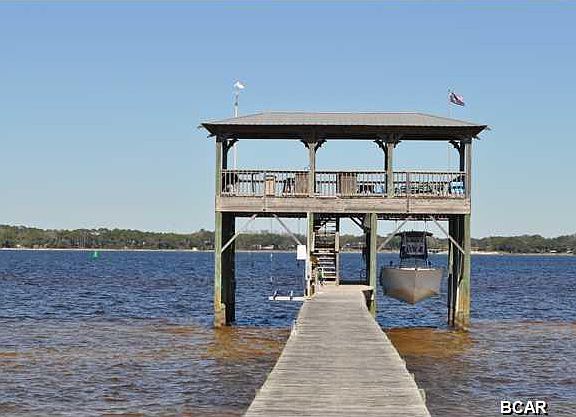 PRICE LOWERED ON THIS FABULOUS PROPERTY TO THE SELL IT NOW PRICE OF $775,000 If you want the best bay view on the Gulf Coast? You must see this custom built, 3-story home with panoramic views of historic St. Andrews Bay! With a boat dock and lift, you are literally 5 minutes from the pass and Gulf of Mexico. Constructed in 2010, this is a builders home so you know there are lots of extras included. The first level consists of a two car garage, a workshop, large storage room and a half bath. The huge patio overlooks the bay and boasts a wonderful summer kitchen where the fish tales can be told in high style. The kitchen and living areas are on the second floor, but no need to worry with stairs...just take the elevator! Luxury abounds in this coastal chic home with travertine an