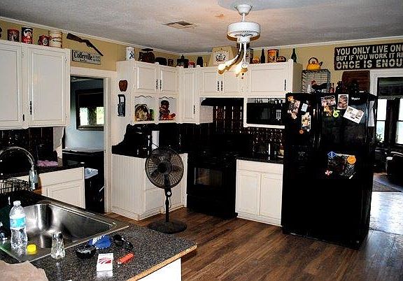 Intersection of CR2400 and CR4335. It is also known as Horseshoe Rd at Indian Village near Coffeyville. Paved frontage. The large country kitchen and baths have been updated. Hardwood and wood-look flooring in much of the house with smooth flooring in baths. Large fireplace. Chain link fence near the house. The 5 acres is wooded and with a pond. There is a 3 stall pole barn and a large barn with lean-to and loft. This is in Parker Township, 16-34-16. Boundary lines are CR2400, CR4335 and CR4345