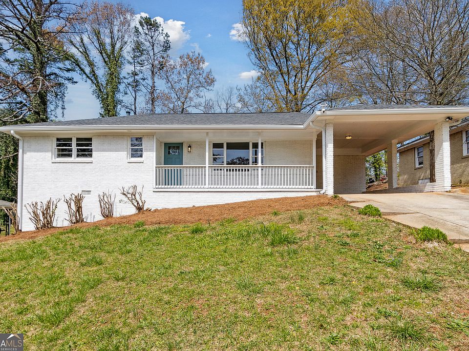 This newly renovated ranch-style home boasts three bedrooms and two bathrooms, offering both comfort and style. Step inside to discover a bright and inviting living space, adorned refinished hardwood floors and a beautiful set of large windows, bathing the room with natural light. The kitchen features all-new cabinetry, counter tops, appliances and a cozy eat-in area. A private back door opens to a spacious patio overlooking the massive backyard, providing an ideal spot for outdoor entertaining or simply unwinding after a long day. With its thoughtful upgrades and convenient layout, and just minutes from I-20, this home is definitely a gem.