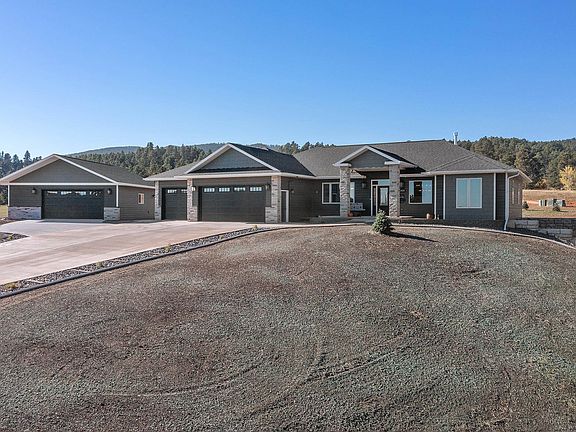 SELLER IS MOTIVATED AND WOULD CONSIDER CARRYIING A PORTION FOR THE RIGHT BUYER!!!! For more information please contact listing agent Bill Phillips 605-490-1358 with The Real Estate Center of Sturgis. Beautiful newly constructed home on 1.23 acre lot on the edge of town. Attention to detail and quality with this custom 5 bedroom 3 bathroom home with everything your looking for! Luxurious master bedroom with treyed ceiling accented with crown molding, heated tile floors in the master bath, large walkin closet and direct access to main-level laundry room and back patio. The great room features luxury plank floor, custom kitchen with beautiful granite, stone fireplace, and much more. All the bedrooms are spacious and finished with hardwood trim and crown molding. Endless possibilities with the huge finished basement family room with access from both the main level and the garage. Speaking of garages, this place has a finished and heated attached 3-car garage, along with a detached, finished, 32x32 garage for all your hobbies and toys! All located on 1.23 acre lot with all city ammenities and great views! Call today for more information or a personal showing.