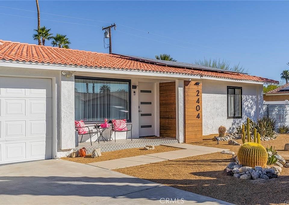 Discover the epitome of Palm Springs living in this stunning Mid-century modern oasis. Solar-owned and featuring a whole house water filtration system, this entertainer's dream home boasts a new private swimming pool, cabanas, and a poolside Sunroom. Enjoy breathtaking mountain views and Palm Tree-lined streets in the coveted Desert Park Estates. Indulge in a gourmet kitchen, master suite with French doors, and a color-changing fireplace. Entire floors, kitchen cabinets and vanities are all brand new. With ample parking, low-maintenance landscaping, and luxurious lighting, this residence offers the quintessential Palm Springs lifestyle.