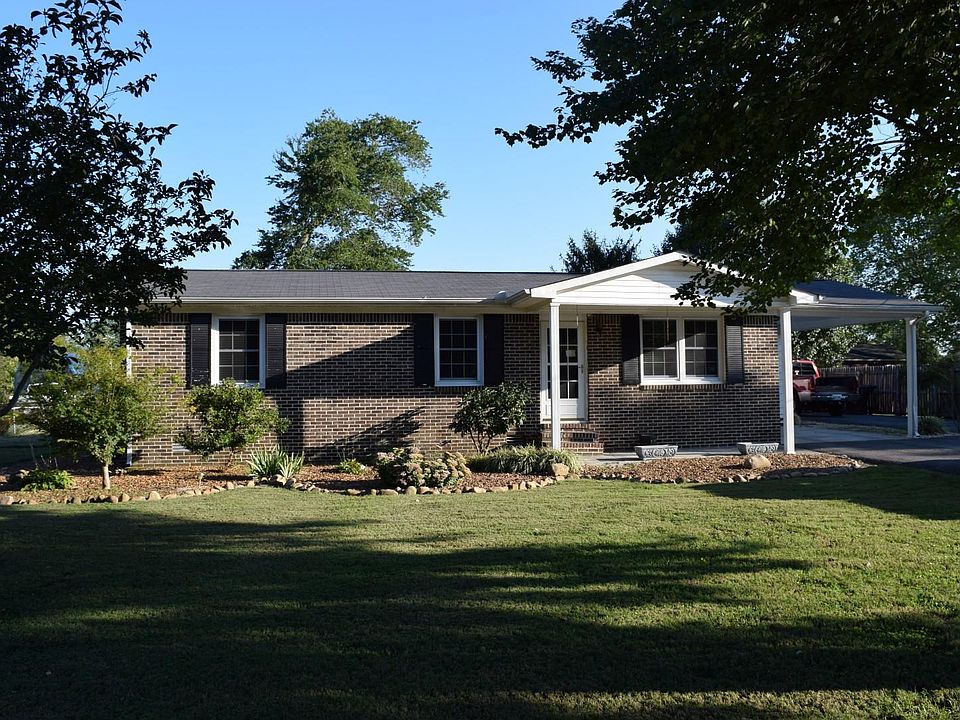 2 BR 1 bath brick home. Laminate flooring. Open kitchen with cherry stained cabinets. Large master bedroom with double closets. 1 car carport, 2 car detached garage. Home is currently rented.