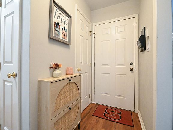 Adorable charmer less than 5 miles from downtown Raleigh! A bright foyer and cheery kitchen greet you as you step through the front door. Lots of cabinets, stainless appliances, a modern deep stainless sink, under-cabinet lighting and updated countertops make this kitchen really shine! The dining room, just off of the kitchen, overlooks the spacious family room. It is accented by a soaring cathedral ceiling and wood-burning fireplace. The owner's retreat features double closets, a double vanity and walk-in shower. There are two additional bedrooms along with a second full bath with a tub/shower combo. Relax in the private, wooded backyard. It's a true oasis, just outside of the city.