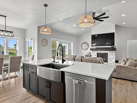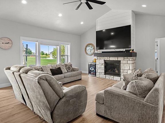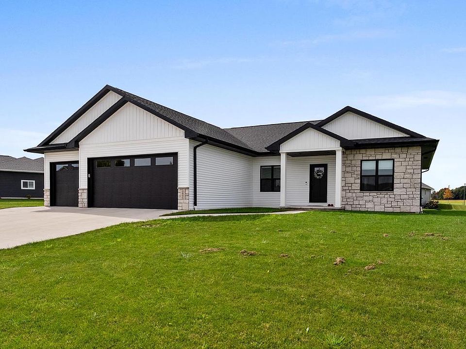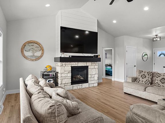 Sprawling open concept 5 bedroom, 3 bath ranch home built in 2023. Dream kitchen with custom cabinetry, Quartz counters, appliances included, large island and huge pantry. Living room with soaring vaulted ceiling, beautiful gas stone fireplace and luxury vinyl plank flooring. You will love the first floor laundry and drop zone area. The primary suite has a custom tiled walk-in shower, double sink vanity, jetted tub and large walk-in closet. Wonderful fully finished lower level with family room, two additional bedrooms and bathroom. Patio area and over 1/2 acre yard. Attached, drywalled and insulated 3 car garage.