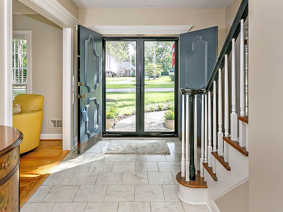 Welcome to elegance and function in this move-in ready 4BR/2.5BA luxury home in the popular Northfield Subdivision. This immaculate home sits on a beautifully landscaped property along a special section of Northfield with a tree-lined median and a one-way street. This home has a great flow for entertainment and a comfortable lifestyle with hardwood floors extending through the first floor. Enter the home through double doors and be greeted with a marble floor foyer. Floor to ceiling windows in the living room pours an abundance of natural sunlight into the large room. The formal dining room will absolutely create a festive ambience to celebrate holidays. There is a bonus room that can be used as an office/library with built-in shelving an cabinets. Picture friends visiting as you prepare meals on the granite countertops in the eat-in kitchen. Also featured is a wet bar/buffet pantry, backsplash and a large picturesque window overlooking the backyard. The family room offers many hours of ultimate relaxation in front of the wood-burning fireplace complimented by built-in bookshelves, cabinets, and vaulted ceilings. The owner's suite is a retreat in itself with crown molding and private bath that invites you to unwind after one's busy day in the combo garden tub/shower. You will find tile and a granite vanity, as well as walk-in closet. There are three remaining bedrooms on the second level with a full bathroom that features a double granite vanity. Tired of running up and down stairs with dirty laundry? No problem with the convenient laundry chute on the second level. The partially finished basement is a great space to furnish as a second family room or playroom. The laundry room is generously sized and includes shelving and space to stay organized. The unfinished area has a lot of storage space and a utility sink. Wait until you see the outdoor living space where the beauty of nature is showcased. Under mature trees, host cookouts and gatherings in the fenced yard while playing a game of badminton or simply sit and enjoy a beverage on the private patio. There is adequate room in the 2-car garage. Not only is there hardwood flooring, crown molding on the main level, and new carpeting on the 2nd level, this unique property is one you will want to see in person. One of the best locations for Jefferson County Public Schools and private schools! Centrally located near shopping, restaurants, entertainment, and the interstate. We invite you to schedule your private tour TODAY so you can experience the many quiet moments of solitude and be captured by this home's beauty.