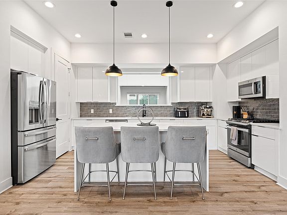 Step into 2,089 sq. ft. of modern living in the heart of Third Ward. This 3-bedroom, 3.5-bath home is designed for both comfort and style. The open-concept second floor showcases soaring ceilings, oversized windows, and a sleek kitchen with quartz counters, stainless steel appliances, and a generous island—perfect for entertaining. A private first-floor bedroom with an ensuite bath makes an ideal guest suite or home office. Upstairs, the primary retreat features dual vanities, a soaking tub, and a walk-in shower for a true spa-like experience. Enjoy two private balconies, secure gated entry, and a two-car garage. Just minutes from Downtown, the Medical Center, and East River Project. Contemporary style meets city convenience. Welcome home!