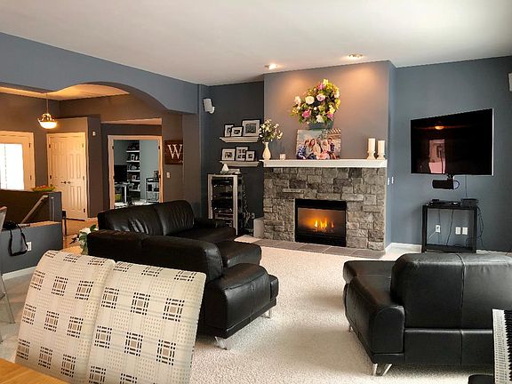 City of Waukesha - River Hills Estates Beautiful open concept ranch with partially exposed lower level. Main floor features 10' ceilings, huge great room with stone fireplace and Ash wood floors. Kitchen has a breakfast bar with abundance of white cabinets. Master suite has a huge walk-in closet. This ranch has a lot of windows that lets in the natural light and beautiful sunsets. A wrap around deck, which extends 12' out from the house, overlooking a private parklike yard. Don't miss out on this one!