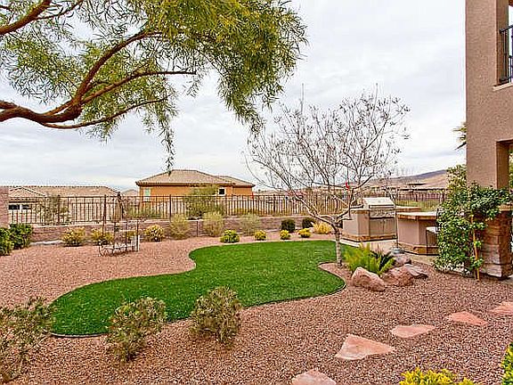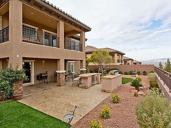 Model condition with City and Mountain views! Pool sized backyard with built-in BBQ with fridge, covered patio, raised planters, stamped concrete patio and no neighbor directly behind the home. Tile floors downstairs and upgraded carpeting and pad upstairs. 5 total bedrooms with large loft/game room. Gourmet kitchen with granite countertops and custom weaved tile backsplash, stainless steel GE monogram appliances and cherry wood cabinets with lighting underneath. Master with large walk-in closet, Jacuzzi tub, large balcony with strip, city and mountain views! Large laundry room with sink and cabinets. Wrought iron staircase, tank-less water heater, wood shutters, stamped concrete driveway and front porch, custom weaved tile accent on wall and much more! All located in a guard gated community with pool, spa, fitness gym, tennis & basketball courts! Call Mike Carlucci at 702-461-4422 or go to www.MikeCarlucci.com for more details.