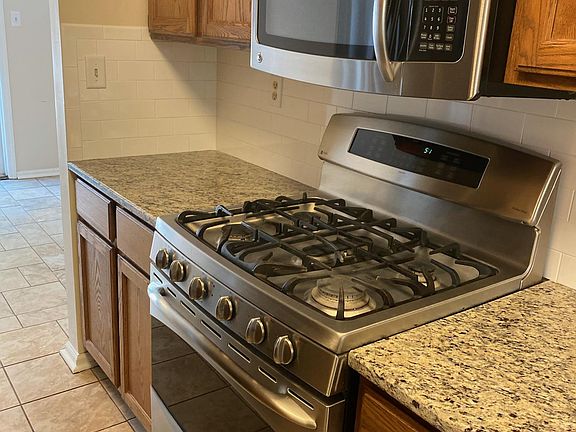 Soaking tubStainless range hoodUpgraded designer tile floorStainless gas rangeVaulted ceilingPlenty of cabinet spaceLarge walk-in closet