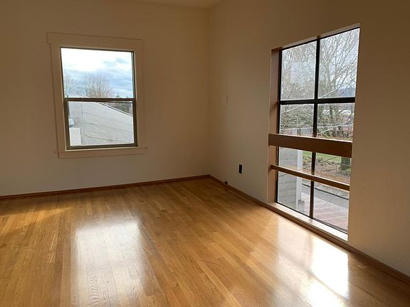 Soaring city views from this beautiful upper William Corridor 2 bedroom flat in 1910 building. 1100 sq ft. Unique city views. Lots of light. Formal living room and dining room with original fir floors, high ceilings, and pocket doors. Spacious kitchen great color scheme, lots of cabinets and stack washer and dryer. Big bathroom with lots of storage. Two private back bedrooms at the end of a classic long hallways. The unit has lots of windows and is very bright. Mini split provided heating and cooling. Shared backyard. No smoking. Cats okay. Terrific close in location.No smoking. Not a type A accessible unit. Go to the High Five Properties website at highfiveproperties.com for disclosures and applications. Open for applications. Tenant pays gas and electric. Water, sewer, and garbage included in the rent. Cats okay but no dogs. Across from Lillis Albina Park. Great location close to the shops and restaurants on N. Williams.