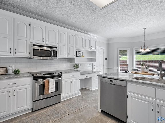 Serene Huntsville residence w/ BRAND-NEW KITCHEN, multiple bay windows, private/mature backyard, and fresh paint! The stunning and updated Kitchen includes custom flooring, cabinets, and quartz countertops. Downstairs also offers a spacious Home Office, DR, main LR w/ gas fireplace, and generous Sunroom. Upstairs includes Master bed w/ full ensuite bath w/ tile shower and WIC, and then 4 additional beds, two baths, and convenient laundry. The 5th Bed could also function as a spacious and updated Bonus Room. The Sunroom overlooks the private backyard, back deck, and grilling patio. Nestled next to the Land Trust of NA, this property boasts walking access to Oak Park and Hiking Trails.
