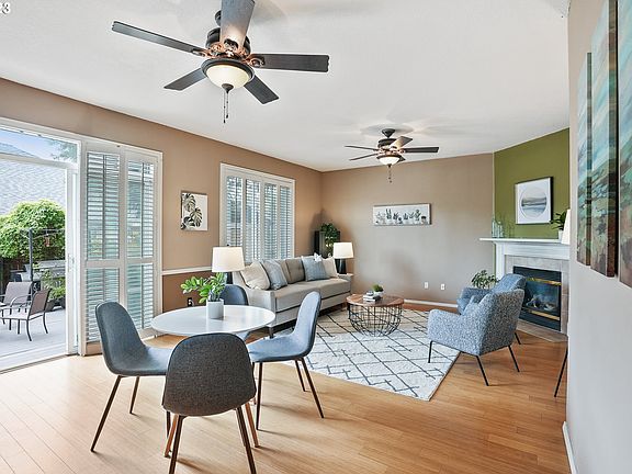Lovely home on corner lot in heart of Forest Grove with NO HOA! Oversized driveway to fit boat or RV. Main floor features bamboo floors, kitchen with quartz counters, pantry & open dining/living room with cozy fireplace. Primary en suite with vaulted ceilings and walkin closet. Bonus space at top of stairs perfect for home office or play space. Fully fenced backyard with trex deck, matching shop/storage building with electricity, fire pit area and side yard. Enjoy established fruit trees!