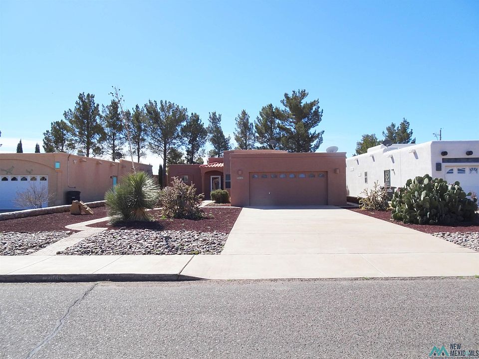 55+ HOA Community in Deming, NM. Pueblo styled southwest home with 2 bedrooms, 2 baths, 1140 sq ft. Kitchen with dining area, living room with sliders to rear covered patio. Main bedroom has exit door to patio, walk in closet, double sinks. 2 car attached garage. This is an Estate Sale and Executor to do no repairs. Being sold in it's present condition. Convenient location to downtown Deming, NM, I-10 interstate to Las Cruces, Lordsburg and the Airport at El Paso, Texas. silver City NM to the north and Columbus NM to the south. Palomas Mexico is just across the border from Columbus.