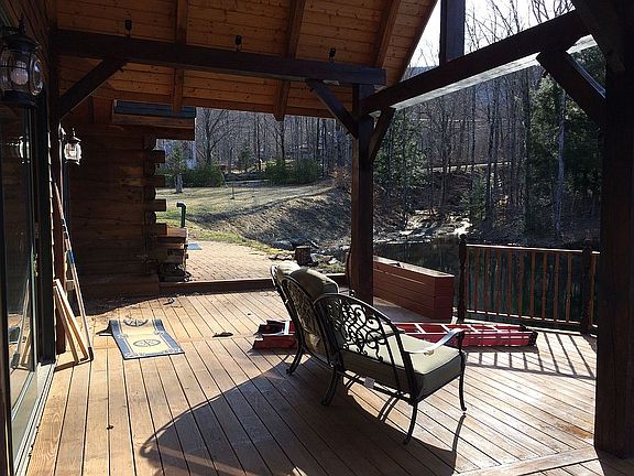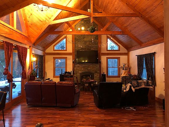 Looks like showings can start weekend of 4/24. Face mask are required and if you are sick will need to schedule. Log cabin with a large addition completed approx. 2013. Located near Jay Peak, about 10 miles away for skiing and other recreational activities. Lots of natural light throughout the home. 2 rooms have cathedral ceilings and large windows. Grand room has a propane fireplace with real granite rocks, the size of the room is 700 sq ft. Kitchen is open to dining and sitting area. Refrig, washer and dryer replaced 4 years ago and brand-new dishwasher installed Oct 2019, with bottle washer feature. 2 large bedrooms, with another room possible to convert to large bedroom. 1 bedroom is upstairs that has 2 sky lights, built in dresser with shelves and beautiful view over the pond. Large bathroom with 2 separate sinks and vanities with each its own medicine cabinet and a deep soaking tub for those long days. 1st floor laundry. Beautiful deck that is partially covered that overlooks the pond. Huge glass sliding Anderson door that sits off the grand room. Beautiful home with lots of woodwork and character. 15.5 acres of land to explore and watch wildlife that use the pond. Front yard consists of mature cedar hedges that follow the rd for about 500 ft for privacy. Two established flower beds, a small herb plot and raised veggie garden, 2 mature apple trees and several flowering shurbs. Well is 35 gpm. Improvements done: House logs re-finished the summer 2018, new chimney liner added last September and one of the roofs redone last spring. 5-10 minutes from local grocery store, restaurants and various amenities. Quite dirt road, which is great for walking. Live in a rural area, but have nice amenities in the surrounding area. 50 minutes to stowe, 75 minutes to Burlington and hr and 40 minutes to Montreal. 15-20 minutes to large grocery store Hannafords in Enosburg. A very serene unique home with lots of possibilities. Internet speed up to 15mps is available which allows flexibility to be able to work from home. House setup for generator. Call 802-393-9120 or Email nightfirejg@gmail.com for questions to setup a showing for some point in May.