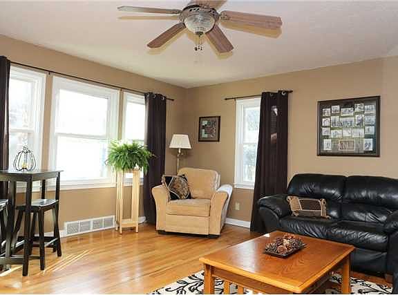 Charming 1.5 story home with the character of glass door knobs. arched entries & original hardwood floors. Large living room w/picture windows for natural daylight & views of the mature neighborhood is a favorite gathering spot. Eat-in kitchen offers all appliances & plenty of cabinet space for the cook of the home. Sliders lead out to a new deck for chilling & grilling. 2 bedrooms are near the full updated bath. Stairs lead up to a great space for a bedroom suite to include sitting room & bedroom. Lower level is finished with family room/4th non conforming bedroom. Washer/Dryer included in the laundry room near ? bath & storage. Keep the outside tools/toys & car dry in the garage. Enjoy the fresh paint on the inside & metal siding on the outside. Newer windows & newer furnace keep the utility expenses affordable. This location is in easy access to downtown, I-235 to suburbs and near library, aquatic center, & bus line. Make this afforable & adorable place your next Home Sweet Home!