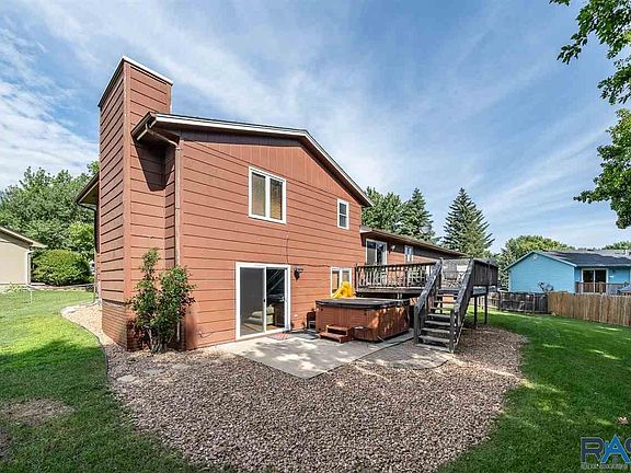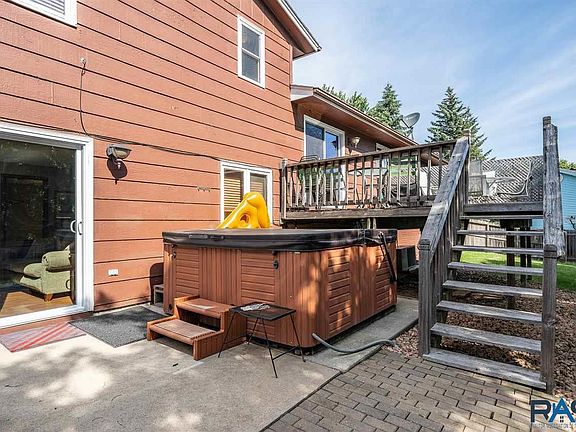 Here it is! Westside Sioux Falls, Large Multi-Level home 4 bedroom, 5th non-legal bedroom, 2.5 baths, walkout basement in a cul-de-sac! Home is in the Roosevelt/Memorial/Oscar Howe school districts within walking distance of all 3 schools. Walk to the elementary school, park, walking trail, pool & golf course without crossing a street! 3 bedrooms on the same level, spacious walkout family room with fireplace that walks out to a large patio with hot tub. The hot tub stays! Open kitchen design with slider door to deck & large fenced-in yard. Attached oversized, insulated garage is set up for entertaining! New garage door, drop down screen door, electric heat, AC unit & plenty of room for all your toys! Recent updates include: master bath with walk-in tile shower & heated floors, main bath also has heated floors & new tile, new roof & new front door. This is a great family home in a prime location near Kuehn Park! Must see!