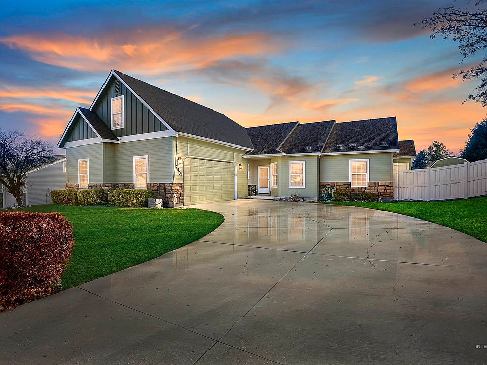 Looking for a SHOP, RV Parking & NO HOA? Here you go! This newly renovated home has BRAND NEW Paint & Carpets, Newly Refinished Hardwood Floors, New Kitchen & Bathrooms & newer AC/Furnace! Situated in the charming Hillside Manor subdivision, this home welcomes you with vaulted ceilings & an open concept living area with a cozy Gas Fireplace. Love to cook? The brand new Chef’s Kitchen boasts Quartz Counters, Tile Backsplash & Stainless Steel Appliances. The master suite features a renovated bath with separate Soaking Tub, Double Sinks, Quartz Counters, Tile Backsplash & new fixtures. The upstairs Bonus Room is perfect for a den, gym or theater! Step outside to the spacious backyard to find a Covered Patio, 2 Sheds & Garden Areas with Concrete Curbing, providing ample space for relaxation or entertaining family & friends. Don’t forget to bring your toys, as this property offers parking for 4 with an attached 2-car Garage, a separate Detached Shop with electrical & an upstairs Man Cave! Close to Lake Lowell!