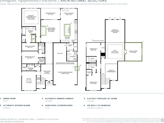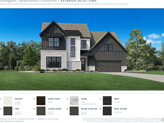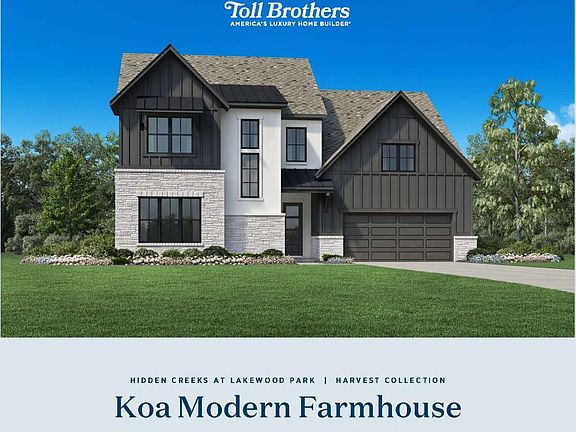 The Koa Modern Farmhouse boasts a contemporary farmhouse style with modern conveniences. The two-story foyer makes a statement upon entry. The spacious home office with front yard views is ideal for remote work or homework time. The private guest suite with a full bath and walk-in closet is ideal for multi-generational living or overnight guests. The open, two-story great room features multi-slide doors that open to the covered patio. The well-appointed kitchen includes an expanded island, casual dining space, and walk-in pantry. The relaxing primary bedroom suite is on the main floor and is enhanced with a tray ceiling and stunning bath with a dual-sink vanity, separate tub and shower, and a sizable walk-in closet. Upstairs is ideal for entertaining, with an open loft and bonus room that could be used as a media room. Two spacious bedrooms and two full baths provide space and privacy for all. Disclaimer: Photos are images only and should not be relied upon to confirm applicable features.