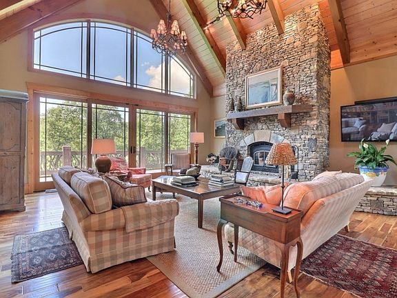 A home nestled on a stunning 24.15 acres with gated entrance & scenic drive providing the utmost privacy in the mountains. Streams, creeks, pastures that stretch to USFS, & seasonal mountain views - imagine all of the outdoor adventures located right in your backyard, plus a spot for 2 RV hookups! 3 car garage with living space above leads to spacious mud/laundry room. Exquisite details throughout such as brazillian walnut flooring & custom Mountain Laurel railings. Spacious kitchen with copper sinks, 2 dishwashers, & more. Natural light floods living room from the windows that stretch with cathedral ceilings. Main suite has gas FP for a cozy setting, jacuzzi tub, 3 shower heads, & large walk-in closet. Covered outdoor FP seating & uncovered trek deck - your escape to relaxation. Basement brings the entertainment with gym, wet bar, play/game room, & theater!