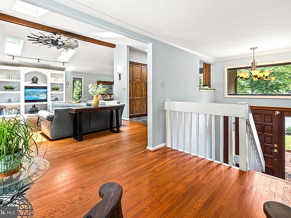 Over 150K in upgrades! Surround yourself with nature in this beautifully updated 4-bedroom, 3-bath contemporary split-foyer home in Reston. Situated in a cul-de-sac, set on a wooded lot, the home features a stunning deck that spans the length of the house and is accessible from both the great room and the serene primary suite. The spacious great room impresses with vaulted ceilings, skylights, a striking stone fireplace, built-in bookshelves, and French doors opening to a peaceful, tree-lined backyard. The fully renovated kitchen offers granite countertops, custom cabinetry, stainless steel appliances, and ceramic tile flooring, while hardwood floors flow throughout the main level. The zen-like primary suite includes its own wood-burning fireplace, access to the deck, and a luxurious fully renovated en-suite bath with custom dual-sink cabinetry, heated tile floors and a glass-enclosed shower. Hall bathroom also fully renovated with ceramic tile, granite counter tops, glass bowl sink. Lower level features a generous size, full bathroom, guest suite, newly installed luxury vinyl plank flooring (2025), along with new blinds (2021). New Roof and Deck installed 2020, HVAC inside unit and outside unit replaced in 2018, hot water heater replaced in 2017, fully installed fenced in backyard, installed sump pump, some new windows installed, and a two new metal garage doors installed in 2016. With its modern updates, spacious layout, and tranquil setting, this home is the perfect blend of style, comfort, and nature—all just minutes from Reston’s trails, lakes, shopping, and commuter routes.
