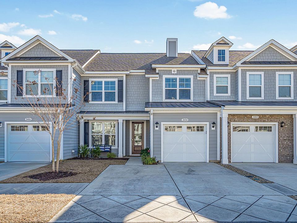 Welcome to 2404 Thoroughfare Dr., a luxurious townhome located in the exclusive, gated Blackwater at Dye Estates Community within Barefoot Resort & Golf. Perfectly situated, this upscale community with resort style living offers a short golf cart ride to the beach with access to the exclusive Barefoot Beach Cabana with ample parking, private access to the beach, bathroom facilities, and Staff attendants. Also enjoy the 15,000 sq ft North Tower pool overlooking the Intracoastal Waterway. This immaculate 4-bedroom, 2.5-bath home, built in 2020, features a first-floor master suite with a tray ceiling, ensuite bath, and walk-in closet. The open-concept kitchen boasts quartz countertops, stainless steel appliances, and ample storage. Upstairs, you'll find three additional bedrooms, a full bath, and a spacious loft ideal for guests or recreation. Enjoy serene pond views from the tiled screened-in porch and extended patio perfect for morning coffee or evening drinks. This home also comes with a transferable golf membership to the prestigious Dye Club, granting access to three championship courses designed by Greg Norman, Davis Love III, and Tom Fazio. Beyond the home, explore 2,300 acres of Barefoot Resort, offering walking trails, bike paths, and proximity to Barefoot Landing's restaurants, shopping, and entertainment. Whether you're seeking a primary residence or a second home, this gem combines luxury, convenience, and the ultimate coastal resort lifestyle. Don't miss your chance, schedule your showing today. The only thing missing is YOU!