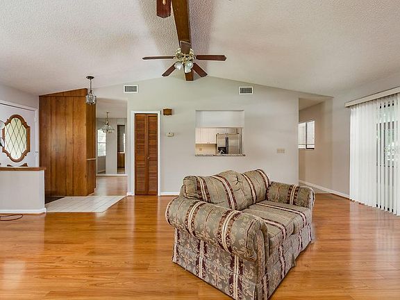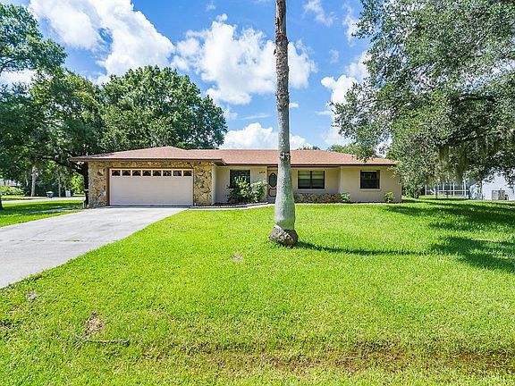 SUMMER FUN STARTS HERE! Almost 1/2 acre corner lot in NON-DEED RESTRICTED Deer Brooke Community. Enter home with GREAT ROOM with soaring ceilings and corner stone floor to ceiling wood burning fireplace. Laminate floors with sliding glass doors that lead to screened lanai. ENTERTAIN IN UNCROWDED comfort in this spacious dining room, with built in china cabinet for your special dishes. A TRIO OF WORK STATIONS in efficient kitchen, with all appliances included. Master suite features walk in shower and closet. Newly painted interior and new carpet in three bedrooms. Split bedroom plan. MAKE A SPLASH! In-ground pool with screened covered lanai, perfect for hosting a large family party! Large backyard ready for a game of volleyball! Call now for details!