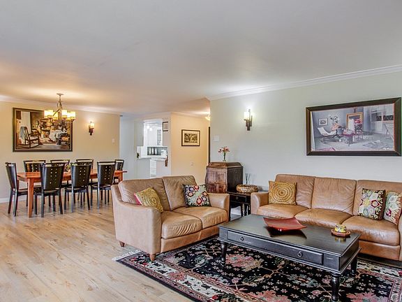 IMPECCABLE REMODEL, High-end and gorgeous! Elegant and classic. Top Floor, end unit, light and bright with only one common wall, and delightful, romantic views of a winding road, huge trees, and a beautiful courtyard. This spacious 1663 SqFt home was remodeled with smooth ceilings, double pane doors and windows, and beautiful high end laminate floor. The living room is HUGE, with sliding doors leading to the enclosed balcony with courtyard view. The formal dining room with glass doors opens up to the balcony as well. Both L/R and D/R feature alabaster designer lighting. The spacious, luxurious kitchen offers TRUE CUSTOM made-to-order cabinetry, with pull out deep and soft closing drawers, 3 Lazy Susans, and stunning white quartz counter tops and top of the line S/S appliances. Both bathrooms were remodeled with tile and European style glass enclosure. The 3rd, 14X16, BR doubles up as an office/ home theater. The amenities include 3 golf courses one of which is A 27 holes, tennis and pickle ball courts, 7 clubhouses, 5 pools, equestrian center, sport courts, arts and craft, professionally equipped wood shop, gardening plots and over 200 clubs and organizations. This manor is located close to Club House 4, short distance to the warmest pool in the village. Easy access to the FWY, and minutes away from shopping, entertaining, restaurants and Saddleback Memorial Hospital. It is close to walking trails around a golf course. This is Country Club Living at its BEST