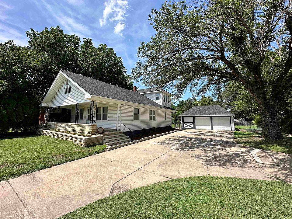 Step into this 1920s bungalow, 4 bedroom, 2 Bathroom, 3 Car Garage,. 47 acre, where classic character meets modern touches and comfort. Situated Near Indian Hills, walking distance to the river walking paths, a sought-after neighborhood, this home radiates the warm charm and craftsmanship that only a home from this era can offer.Upon entering, you'll be greeted by original hardwood floors, Ornate Hardwood Doors, Charmed by the Wide Wood Work throughout, Metal Grate Air Vents, & Glass Door Knobs The spacious living room features a brick fireplace, perfect for entertaining, while the large windows flood the space with natural light. Off of the Living Room is the Spacious Dinning Room. As a convenience the Separage Laundry Room is on the main Floor . With the culture of this home you will enjoy all the Extra Storage Space in the Basement. To include the Bonus room.The kitchen boasts Luxury Vinyl flooring, Mud room/Pantry,Stainless Steel appliances, Lots of Counter Space, making it a delightful space for both cooking and serving quest. w/Luxury Vinyl Flooring The bedrooms are cozy sized with plenty of closet space, and the Bathrooms showcases the modern updates: Tile Floors and Tile Shower Surround, Stone Counter tops, and updated Vanities. Step outside to Inviting Outdoor space, ideal for relaxing or hosting gatherings on the New Wood Deck. The wide Stone front porch Steps & Front Flower Bed Is a touch of Culture for the Neighborhood. is the perfect spot for enjoying your favorite flowers. Lots of extra Parking space for RV, Boat, Jet Ski's etc. The 3 Car Garage Only has 2 Over Head Doors. New roof 7/25, New Insulation in the Attic 7/25. New Screen Doors. Seller is a Licensed Realtor in the State of Kansas. Stop by and enjoy:)