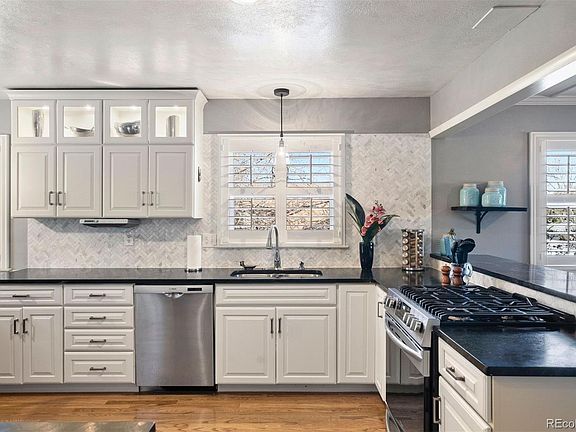 Welcome home to this beautiful house in the highly sought after Ridgewood Park neighborhood. From an inviting courtyard in the front to the Sport Court in the back yard, this remodeled Littleton home is an entertainer’s dream. Impeccably updated, this five-bedroom four bath home offers old world charm and character with a modern twist and comfort. As you enter you are greeted by an inviting entryway where you are sure to notice the hardwood flooring and staircase with wrought iron spindles. The hardwoods flow from a large family room to your right into a lounge area that opens to an eat-in kitchen with banquette seating, classic white cabinets with Carrara marble backsplash above the gorgeous soapstone countertops, a gas range, stainless steel appliances, and a large pantry. The kitchen flows into a dining area with gas fireplace and direct access to newly fenced in back yard with covered patio, TREX deck, hot tub area, and Sport Court – features you’ll cherish all year round! The main area of the home includes an oversize powder room and laundry/mudroom conveniently located on the way to and from the back yard and garage. Upstairs you’ll find 4 large bedrooms, a roomy updated hall bathroom with dual sinks, and an oversized primary suite remodeled to include a beautiful double sink marble top vanity, large shower with frameless glass shower enclosure and walk-in closet. Downstairs in the basement an oasis awaits plenty of versatile space with an egress window and an additional non-conforming bedroom or office, and custom bathroom with large walk-in shower and double vanity. This home is within walking distance from historic downtown Littleton, in between 2 light rail stations, multiple parks and rails, the community tennis courts, and critically acclaimed schools including St. Mary, MacIntosh Academy, Heritage Highschool, Littleton Academy, and the newly built Little Raven Elementary school. Come see this wonderful home before it’s gone.