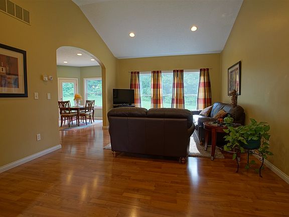 One owner, ready to move into 4 bedroom, 3 bath, 2448 sq.ft. family home with 3 car attached garage on a double lot in Winona Lake, close to the trails, built by Coplan Construction. Foyer entry opens into large living room with cathedral ceilings and plenty of natural light, open floor plan with living room, opening into large fully appointed kitchen with hard surfaced topped island with bar, custom cherry cabinets and new stainless appliances, kitchen attaches to dining room with slider door opening into the large deck over looking the private back yard and large side yard. Split bedroom floor plan, Good sized main level laundry room with plenty of cabinet storage. Large master suite with walk in closet, stand up shower and jetted tub. Daylight lower level has 2 generous sized bedrooms, full bath, large family room, and plenty of storage space. New paint and newer carpet-turn key condition.