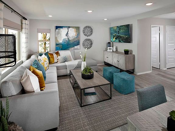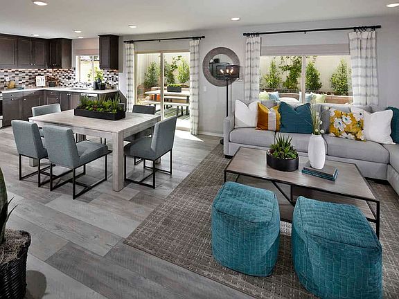 A large porch entry welcomes you into the home, where a spacious great room opens into the dining and modern kitchen area featuring an available prep island.
