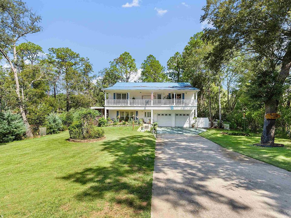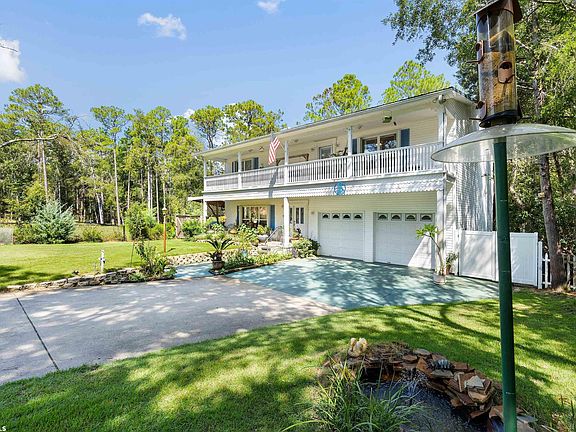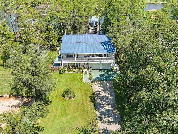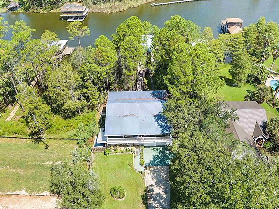 Come check out this amazing waterfront property located in Wolf Bay Pines. This property has so much to offer, and location is key! with this property being located right off Wolf Bay on almost a half-acre lot in a Cul de sac. Enjoy the covered porches or higher views from the front and back balconies that span the length of the home. Attached 3 car garage with "pull through" to back, plenty of storage space with hanging storage as well. Left side of garage currently being used as a workshop area. Lift attached to back of home for easy unloading and loading to upstairs. Relax in the hot tub on the back porch or take a walk down the raised walkway to the Boaters Paradise!! 2-story Boat House with living, kitchen, dining, and swing area. Bottom storage room with plenty of storage for all your water toys and fishing essentials, and a 12,000-pound boat lift. Main floor of home has an open floor plan with fireplace in living room, kitchen island with bar seating, plenty of counterspace(granite) and storage, and separate dining area. One downstairs bedroom with a spacious ensuite. Stairs are equipped with a motorized chair lift. On the second floor you open up a door to a whole separate studio suite with full kitchen and dining area, living/bedroom area with fireplace, ensuite with double vanities, and access to both front and back balconies. Two more spacious bedrooms upstairs with walk in closets that share a separate bath with double vanities and door accessing back balcony. Seller has received a permit to list home as a AirBnB and is established on AirBnB as a rental. Community boat ramp and fishing. Close to OWA, Shopping, and white sandy gulf coast beaches! So many great perks and opportunities this home has to offer. Set up your private showing today!