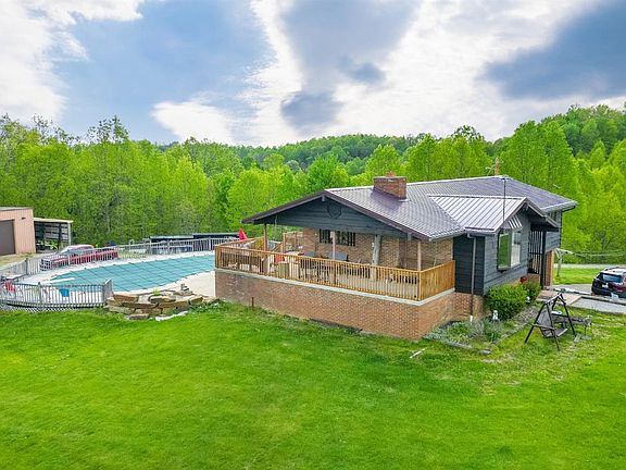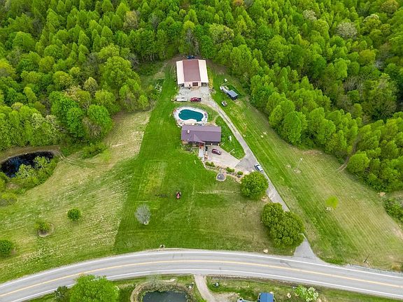 This 3 bedroom home is located in the gorgeous hills of Blue Creek! Sitting on 15+ acres with two ponds, back deck, and an inground pool! Plenty of storage space including a 2-car attached garage as well as an oversized garage with a bonus room and full bathroom!