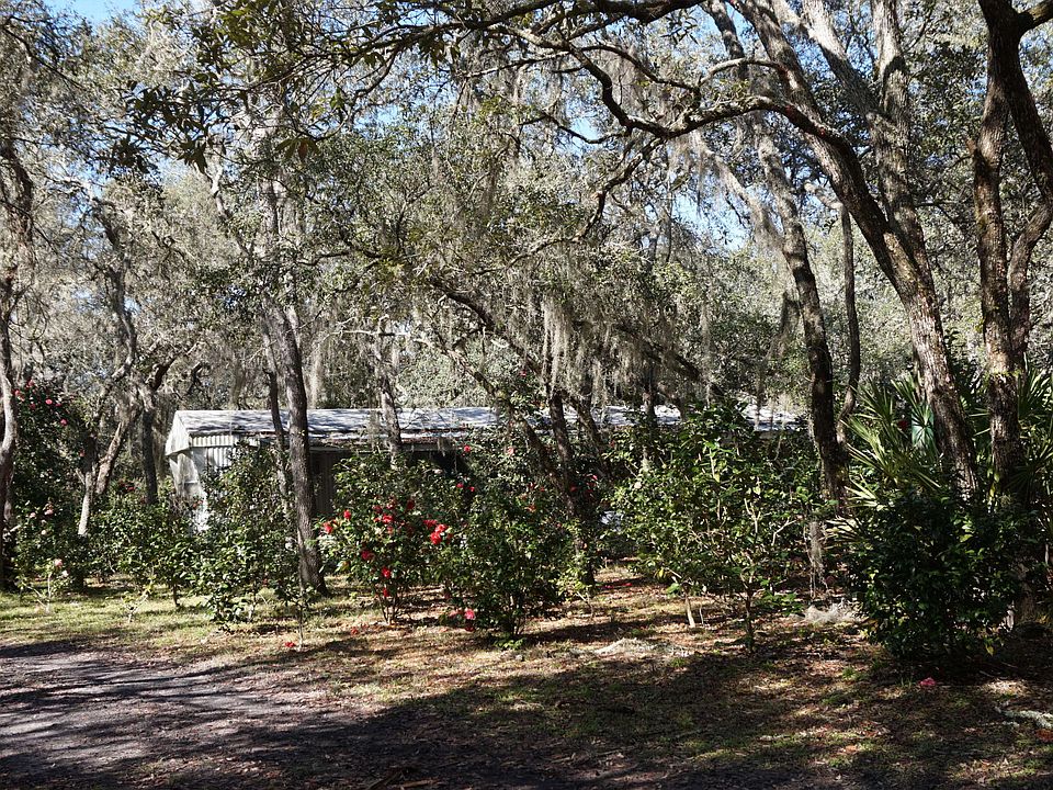 2 homes on 5 acres surrounded by lovely camelias - Used as a camelia nursery with irrigation throughout. Blueberry plants and grape arbor too. Main home is a 2/1 singlewide with rear screened porch. 2nd home is a 1/1 singlewide.Most furniture and appliances included. Would make a great family compound, hunting retreat or rental income. Separate detached hobby room, covered cookout area, workshop with attached carport/pole barn, gazebo. Homes and improvements need work - Cash only. Boat ramp to Ocklawaha River less than a mile away. 1 mile to Dollar General and post office.