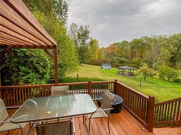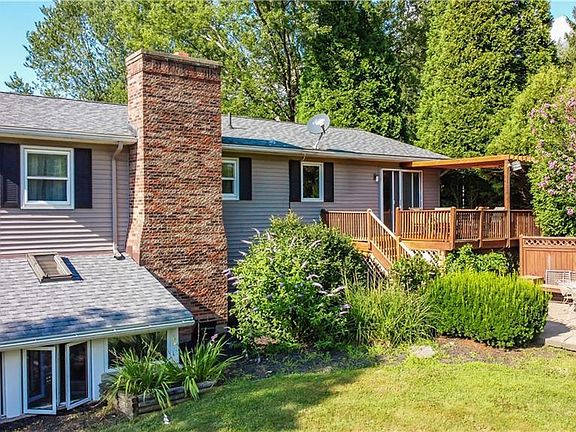 This 4 bed/3 bath, 2 car attached garage home on nearly an acre lot is located in a quiet neighborhood close to town. Boasts new laminate and carpet flooring, great family room in lower level, wood stove as back up heat, private back deck & patio to relax and enjoy. landscaped, has its own pavilion for entertaining. short walk to the development's lake, Penncrest Schools.