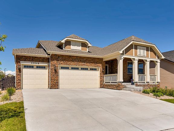 This immaculate ranch style home sits on a quiet street with open space & trails right out the front door! You are greeted by wide plank wood floors in all living areas & designer finishes throughout. The Great Room w/ stone fireplace boasts open concept with large picture windows, adjoining nook & gourmet kitchen featuring stainless appliances, gas cooktop & hood, rich shaker soft-close cabinets, staggered uppers, Quartz sink & countertops, tumbled stone backsplash & roomy pantry. The master bedroom is spacious with tray ceiling & private 5-pc bath with soaking tub, dual vanities, Quartz countertops, pleasing horizontal tile & walk-in closet. Two additional bedrooms utilize a full hall bath with Quartz countertop & an extra Flex Room can be used as dining/study/living room. Enjoy backyard sunsets on the West facing extended patio leading to enhanced landscaping & open space views. The expansive unfinished basement offers room to expand with 9' ceilings & rough-in plumbing.