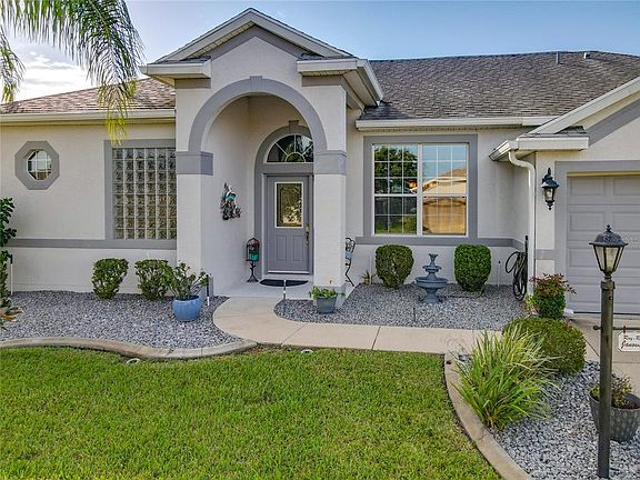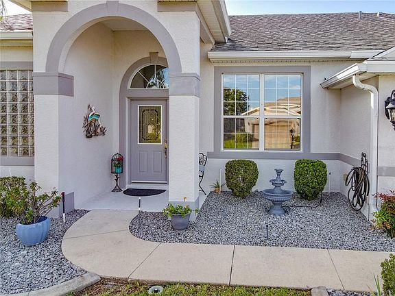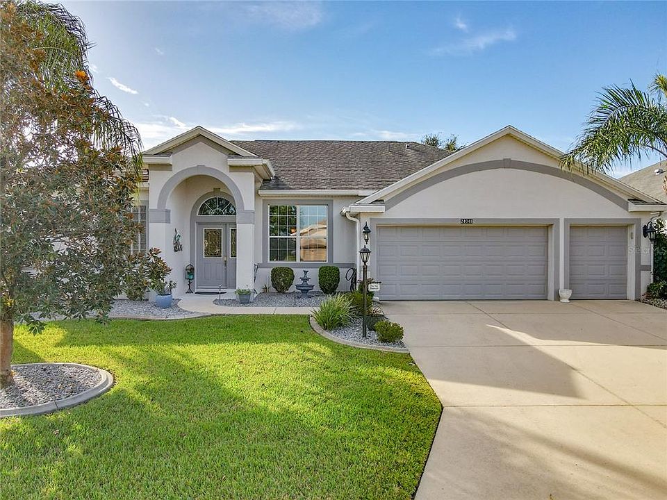 Welcome Home! This Bird of Paradise was built in 2005 and features 2,324 Square Feet under Central air; 3 bedrooms, 2 baths, 3rd bedroom can be used as an office, 2.5 Car Garage, 29x18 Screened Patio, New HVAC in 2021, Neutral Carpets and tile flooring. The amazing open Kitchen has 42" Oak Cabinets, Corian Counters, Stainless Steel appliances, Garbage Disposal & Closet Pantry. Master Bedroom offers a walk-in closet, master bath with a spacious shower, soaking tub and dual vanities. The split concept is perfect for the privacy of your guests and family. Two Car garage with a Gold cart space and side door to the yard. Indoor Laundry room with additional Cabinets for storage. Brampton is a small Village in the Plantation at Leesburg located near the South Gate of HWY 27th. This special home is just waiting for a new family! The Plantation has beautiful championship golf courses, 3 club houses with pools, pickleball, tennis courts, 24 hour security, as well as plenty of other recreational activities .