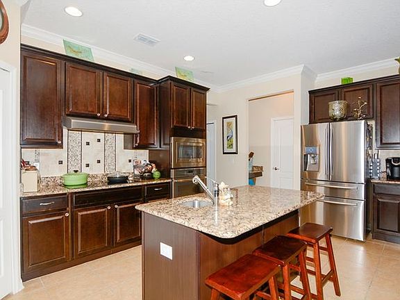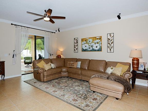 Better than the builder! Upgrades galore in this beautiful bungalow style home. Modern open style living with combo living-dining adjoining a true gourmet's kitchen. Solid wood cabinets, granite counters, stainless appliances, serving island with prep sink. This floor plan features flexible usage space with a spacious media room perfect for home office plus additional den for a more quiet area such as reading or hobby room. Three bedrooms, en suite master bath with separate garden tub and shower. Both bathrooms feature dual vanities with wood cabinets and granite counters. Easy care tile flooring throughout with soft on the feet carpet in the bedrooms. Added value features such as crown moulding, ceiling fans, window treatments and state of the art security system. In addition to the luxurious interior there is an abundance of outdoor living spaces with a covered lanai and outdoor kitchen, fabulous open paver decking, beautiful landscaping, privacy fence and screened entry porch. New homes are now sold out. Palmetto Estates is conveniently located near great shopping at the Ellenton Premium Outlets, fantastic golf and recreation facilities, and beautiful parks, nature preserves, and water activities. The community is zoned to the highly-rated Tillman Elementary Magnet School, and residents can enjoy nearby sports complexes including the Little League fields at nearby Blackstone Park.