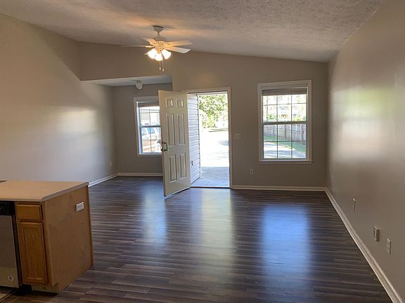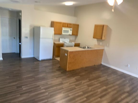 Large 1bedroom, end unit in a triple-plex with vaulted ceilings, fenced yard, laundry hook-up. Kitchen includes stove, refrigerator, microwave, & dishwasher. Covered patio, parking for 2 vehicles. Conveniently located and sits back from the road. One year lease required. A $40 application fee covers credit and criminal check. Owner pays garbage, tenant pays $1255 rent, electricity, and water. Utilities must be in tenant's name before occupancy.