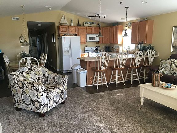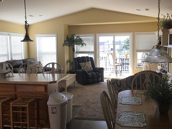Beautiful move in condition second floor flat in the heart of North Wildwood. Property features an open concept with cathedral ceilings in the living room along with sliding glass doors leading to sun filled deck. There is a large breakfast bar in the kitchen with a gas stove, microwave, dishwasher and refrigerator. The dining area is a good size-perfect for a large gathering. The large primary bedroom has cathedral ceilings with an attached bath and plenty of closets. The 2nd bedroom has 2 sets of bunk beds that sleeps 4, hall bath with tub/shower and the 3rd bedroom complete the unit. There is a large storage area on the ground level along with a trash room and over sized front garage with opener. All furniture and wall hangings are included in the sale. The owner has not signed any leases for '22. Show and sell!!