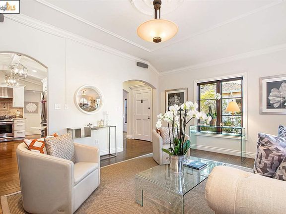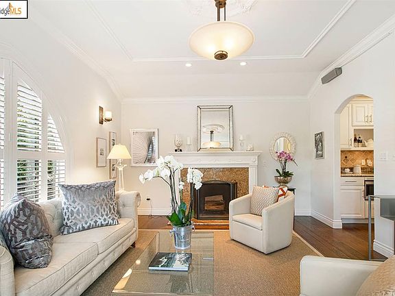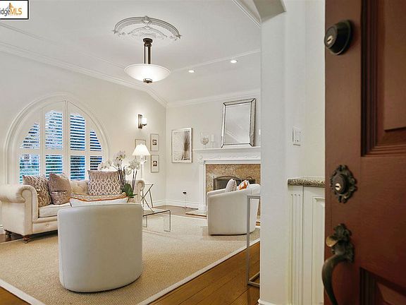 New listing. Rich architectural details abound in this elegant Lincoln Highlands Mediterranean. The formal living room has a coved ceiling, dramatic picture window and welcoming hearth. Nestled between the living room and formal dining room is a spectacular gourmet eat-in kitchen with stone counters, stainless appliances and abundant storage space. The lower family room and guest suite opens out to a beautiful, level backyard and private patio. Perfect for guests! On the upper level there are two bedrooms and a lovely marble bath with large soaking tub. A deluxe master suite offers a full floor of privacy to enjoy Bay views and cozy sitting room with fireplace. Enjoy the modern amenities of solar panels, high-speed EV charger, and ultra high-speed fiber internet connection. Easy access to great food, parks and commute options.