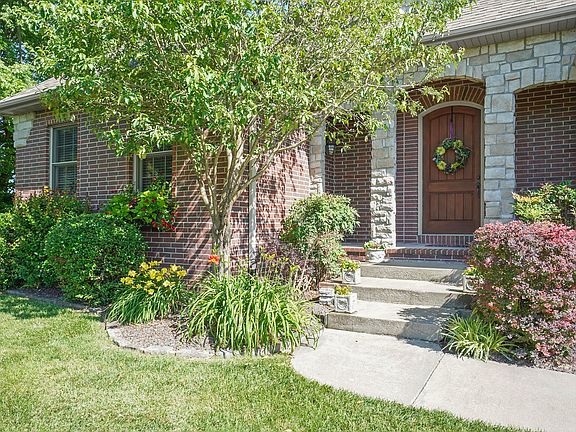 Situated on half an acre in Granite Springs, this charming 4 bedroom was custom built by the present owners. It features a formal living room with gas fireplace, an extra large formal dining room (seats 14), and an atrium door to the back yard. The eat in kitchen has granite counters, stainless steel appliances including a gas stove and new dishwasher. There are two built in pantries with pull out shelving, as well. Flooring throughout is hardwood, tile in bathrooms and carpet in bedrooms. The 4 bedrooms feature the split plan. A brand new large walk in shower, jetted tub, large sit down vanity, dual sinks and large walk in closet are in the master bath. The laundry room is conveniently located by the master bath. In back is a covered patio which overlooks the large back yard. Don't miss the large storage room in the garage. Garage also has stationary steps which lead to the attic. Other amenities include: custom window coverings, painted woodwork, lots of storage throughout, crawl space with vapor barrier, dehumidifier and mesh gutter guards. Granite Springs is conveniently located by Lake Springfield and Hwy 65. It has an Ozark address but Springfield schools.