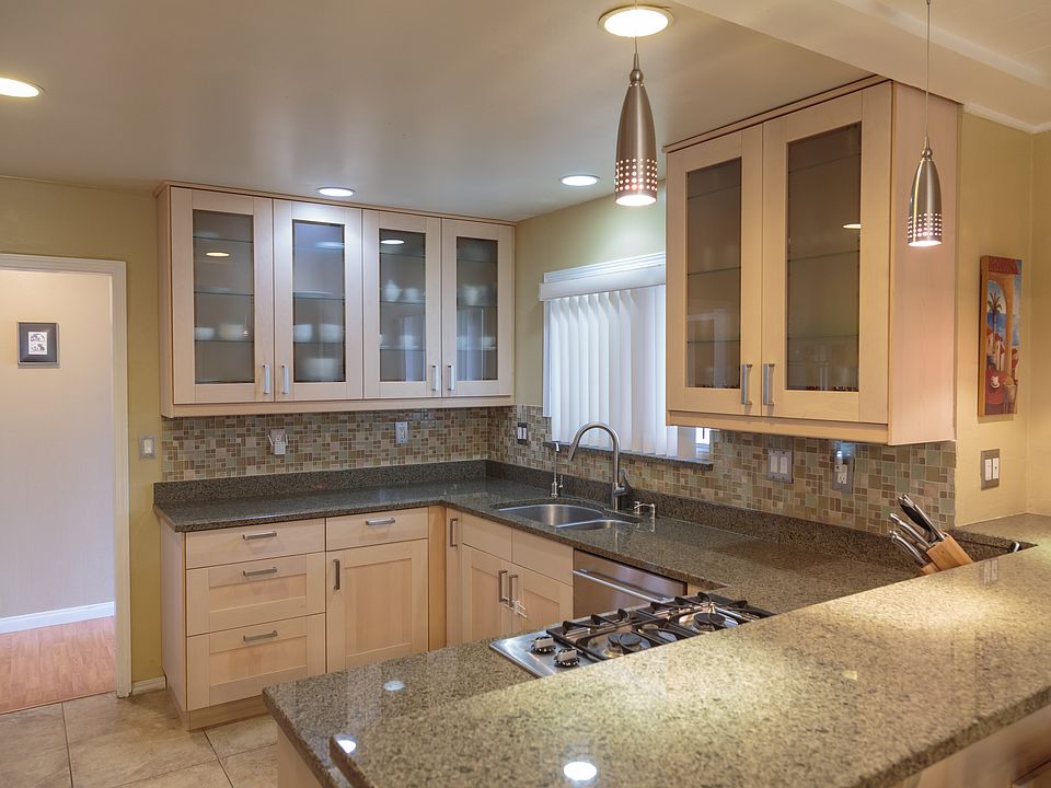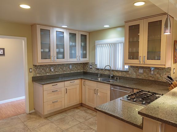 Picture a tree-lined street, friendly neighborhood, a white picket fence & your great 4 bedroom home! This home has it all--custom paint,laminate floors, crown molding, newer windows and sliders, air conditioning and remodeled bathrooms. The single level home has a great floorplan with a large open kitchen, plenty of room for a large table as well. The spacious living room has a wood burning fireplace, custom paint and drapes. There is room for a dining room table too if you want one. The bedrooms are good sized and have ample storage space. Wait until you see the master bathroom! It has been totally redone with custom cupboards,dual sinks, glass enclosure for the shower and beautiful lighting. Outdoors, there is a tropical paradise with lots of grass, lush plantings and a large patio and cover. Hungry? There are fruit trees too. Nearby park, lots of shopping and blue ribbon schools.