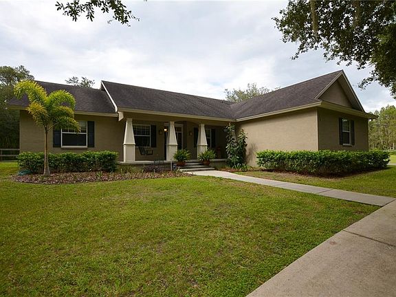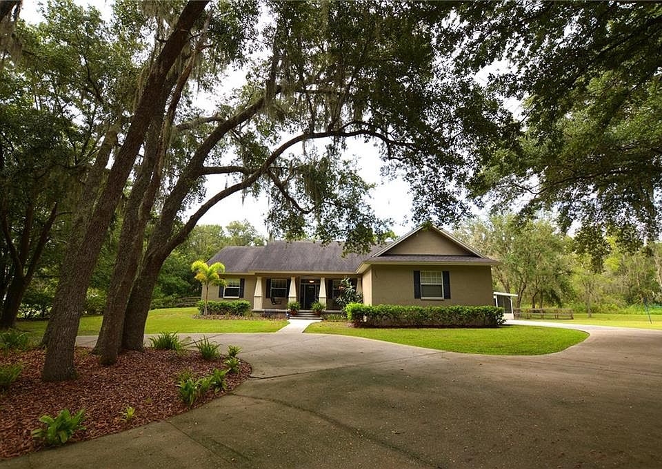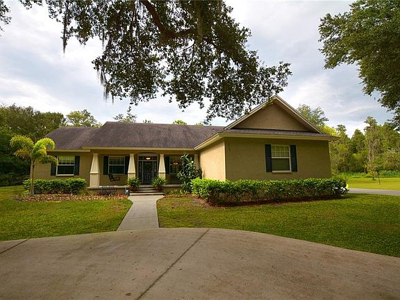 You must see this stunning 4 bedroom, 2 bathroom, 1 flex room, south Lakeland, Ernie White home on 5+ acres. This home boasts 2,300+ sqft of living space, an open floor plan, wood laminate floors, 10 ft ceilings throughout, crown molding, recessed lighting, a large screened in back porch, and an inside laundry room. The spacious master suite has "his and hers" walk in closets, dual vanities with custom cabinetry and granite counter tops, a jacuzzi tub, and doorless walk in shower. The updated kitchen has granite counter tops, wood cabinets, stainless appliances, and a large island. This beautiful home sits on a huge 5+ acre lot and backs up to a wooded area which gives loads of privacy. There is a 550 ft. fenced in back yard with a drive thru gate, a 3 stall garage, a circular drive, extra paved parking, a chicken coop, and a detached screened in room that is perfect for grilling and entertaining. Enjoy the privacy of country living while still being close to everything that south Lakeland has to offer. This one of a kind property won't last long so set up your showing today!