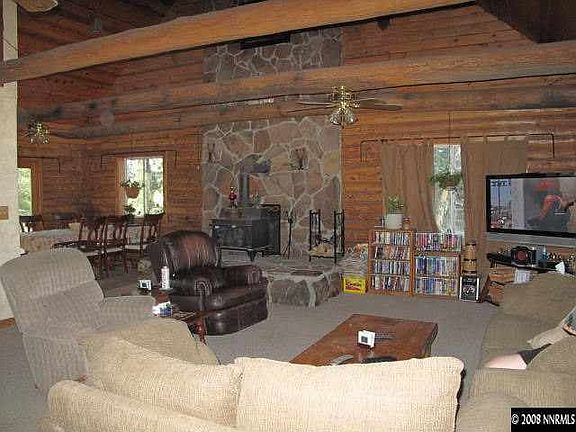 This property has unlimited potential....Great log home on 28+ acres. The home features an impressive great room with a wood stove and natural stone surround. The master is located upstairs with a ajoining loft. There is an unfinished basement not included in the sq ft. Also you will find a oversized two car detached garage, outbuildings and corrals. This property could be subdivided into one acre lots for future development. Banked water rights are avaliable in addition to the sale of the property.