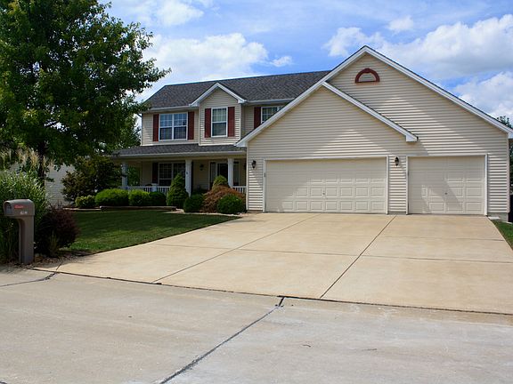 Beautiful 1 ½ story 4 bedroom home located in a quiet 54 home subdivision with one way in and out. House features 3 car oversized garage (insulated and dry-walled), beautiful landscaping, vinyl sided with enclosed soffit and fascia, wrap around front porch, hardwood plank flooring throughout main level, main floor laundry, 3 ½ bathrooms, 42" gas fireplace, main floor master bedroom with luxury bath, kitchen has granite counter tops with stainless steel appliances, 3 bedrooms upstairs with large closets and new carpeting, finished lower level with a bonus room and large walk in closet, walk out basement to patio and in-ground swimming pool, and a nice deck. Don't miss out on this nice house. For a private showing please contact Ron at 636-448-0656.