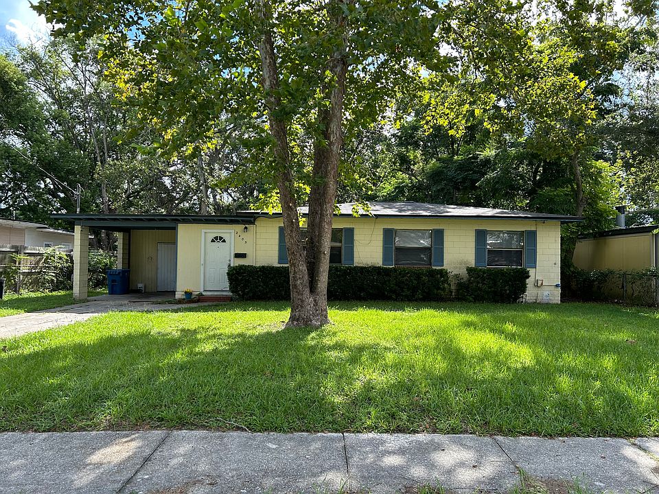 Nice 3-1 home with fence yard and rear wood deck w/ firepit , carport with storage room, inside laundry room and large den area, Hrdwood floors and central heating and air 1 year lease